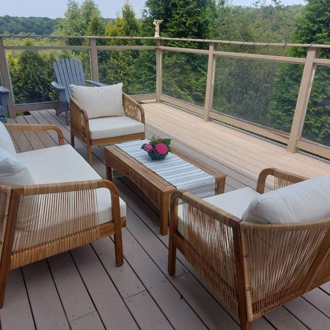 6 reviews for Outdoor Wood and Wicker Lounge Seating Set with Cushions