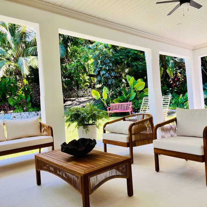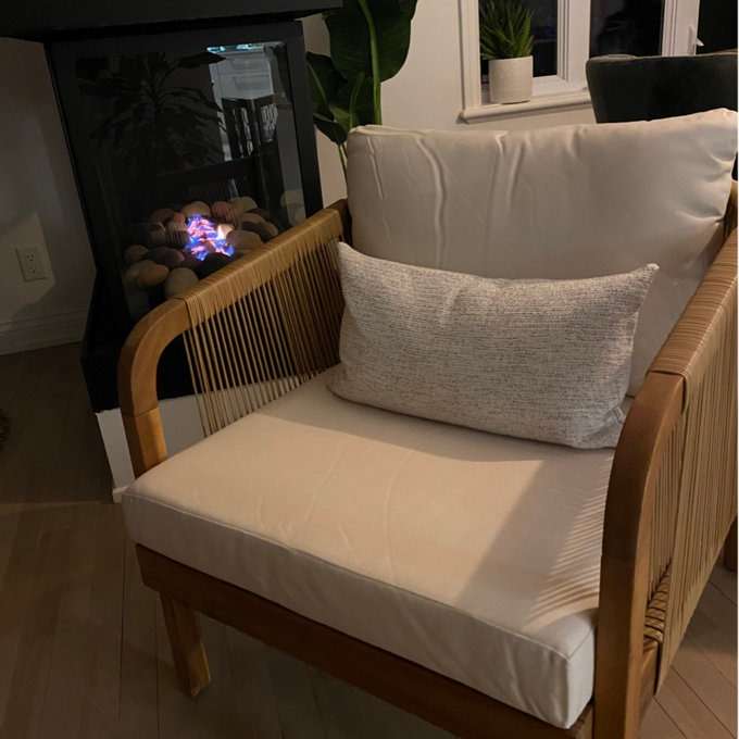 • Design: Open weave rattan design with smooth wood frame for natural outdoor charm