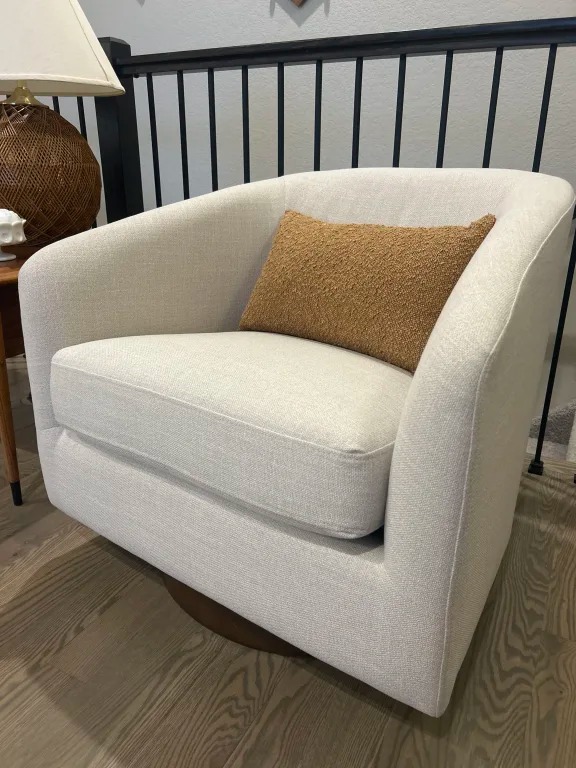 I have been shopping for a swivel chair for quite some time now and I am very pleased with this purchase. I love the color, quality and comfort of the chair. Perfect size. I would definitely recommend this chair.
