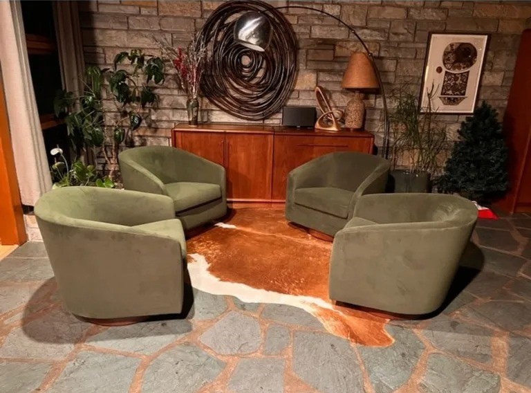 4 reviews for Rotating Lounge Chair in Velvet and Teak Wood