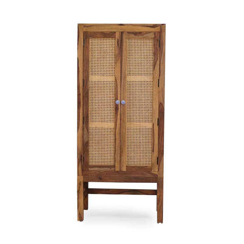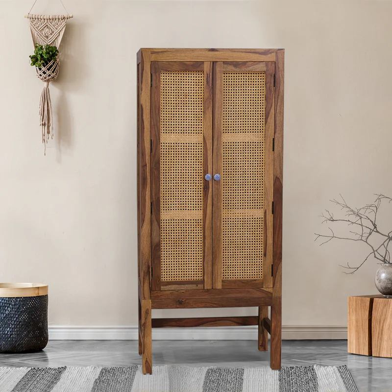 Sheesham 2 Door Tall Cabinet and Sideboard | Elegant Storage Solution with Cane Detailing