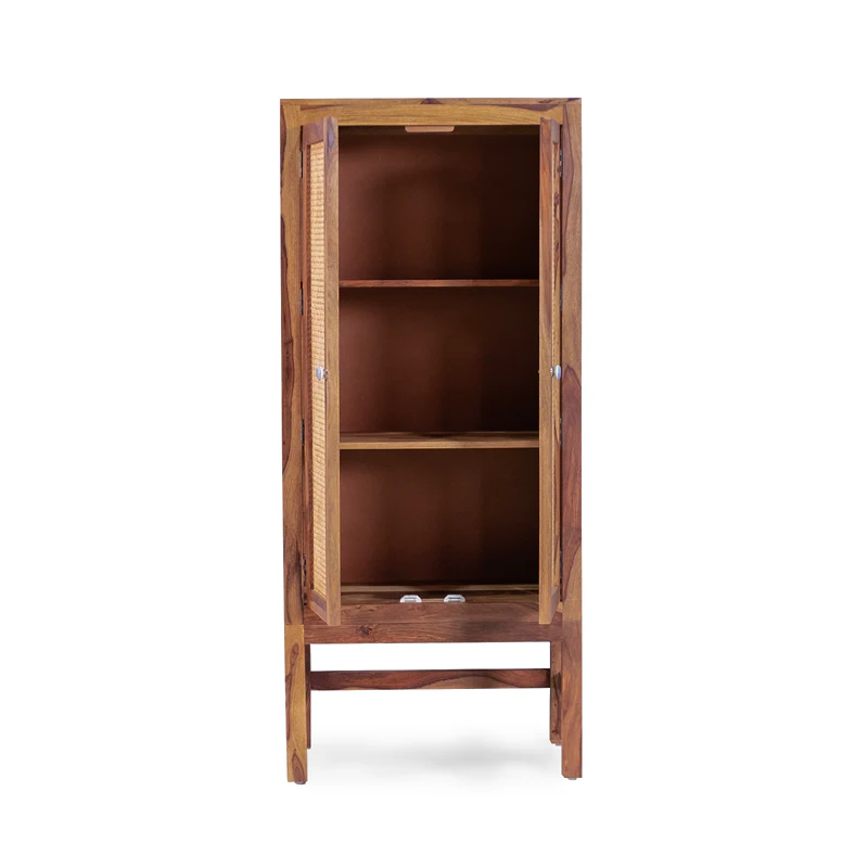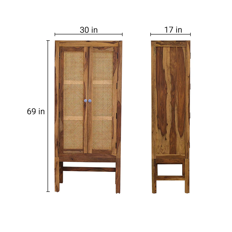 Enhance your home decor with this stunning Sheesham Wood 2 Door Tall Cabinet and Sideboard. Featuring a perfect blend of Sheesham wood and cane detailing, this piece exudes sophistication and timeless elegance. With its tall and spacious design, this cabinet is ideal for storing essentials while elevating the style of your living or dining area. The teak finish adds warmth, making it a perfect addition to any interior.